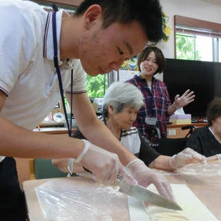 こんにちは。小規模多機能ホームたいじゅ ホーム長の緒方辰紀です。 先週の土曜日7月7日に、たいじゅにおいて五丁こども園のお友達と、Ridetoのみんなと一緒に七夕&だご汁会を開催しました。 朝から小雨が降っていて天気が心配でしたが、なんとか無事開催することができました。 五丁こども園のみんなの願い書いた短冊を事前に笹に結んで頂き、年長組のお友達が代表してその笹をたいじゅに持ってきてくれました。それから、一緒に笹飾りを作成しました。折り紙をはさみで細く切り、その端にのりをつけて丸い輪っかをたくさん繋げていきました。こども園のお友達と、Ridetoのメンバーと、たいじゅのご利用者で同じテーブルに座り、お話をしたり、のりを貸し借りしながら和気あいあいとした雰囲気で飾り作りをしました。 飾りがある程度できたら飾りつけ開始です。ご利用者の願い、Ridetoの願いを書いた短冊。そして、一緒に作った輪っかなどの飾りを笹に飾りつけました。「プリキュアになりたい」「将来警察官になりたい」などのこども園のお友達の可愛いお願いごとや、「単位が全部取れますように」「卒業試験に合格しますように」といった学生たちの切実なお願いごと、「家族みんなが元気に過ごせますように」「世界から戦争がなくなりますように」といった自分だけではなく周りの人たちのことを考えたご利用者のお願いごと。それぞれの願いを乗せた最高の笹飾りが完成しました。 最後に記念撮影と、こどもたちへのお礼のお菓子を渡して七夕会は終了。 引き続き、Ridetoと一緒にだご汁会を開催しました。経緯としては、以前ご利用者の皆様から若いころの生活をお聞きしたとき、「白米なんかほとんどなかった。大根を混ぜた大根飯や、あわご飯ば食べよった。ばってんだご汁は365日毎日食いよったっだけん。」という話を聞き、他の方々からも、「だご汁は昔よく作っていた。」「それぞれ家によって作り方が違うもんね。」といった話を聞きました。そこで、昔を思い出してもらい、手作りのだご汁を自分達で作って食べようという企画しました。 小麦粉を練って生地を作りしばらく寝かせて、それを粉をひいた台の上で伸ばし、包丁で短く切っていくという作り方です。みなさん久しぶりということだったので最初は少し心配していたのですが、台の上への粉のひきかた、棒で生地を伸ばす作業、包丁で生地を切る作業、みなさんとても手馴れた動作で作っておられました。 Ridetoのみんなは、だご汁を作るのも、食べるのも初めてというメンバーが多く、ご利用者様に教えてもらいながら一緒に作業を進めました。 完成品はみんなでお昼ご飯で食べましたが、これが本当に美味しい。家庭によって味付けが違うため、味噌味と醤油味の二種類を作りましたが、どちらも大好評で皆様おかわりをして味噌も醤油もどちらも召し上がっておられました。 今回も、お隣の五丁こども園のみなさまと、Ridetoのみんなのおかげで、心もお腹も大満足のイベントとなりました。本当にいつもありがとうございます。 こちらで内容を決めて、ご利用者様にそれをやってもらうというイベントが多かったので、これからは今回のように、ご利用者様から意見やアイデアを出してもらい、それを実現していくようなイベントを増やしていきたいと思います。